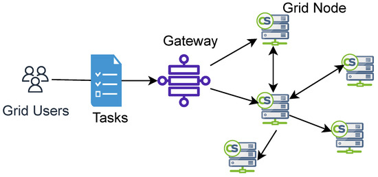 Grid computing involves connecting multiple computers through a network to accomplish common computationally intensive tasks that cannot be performed on a single machine. A network of computers works together as one virtual supercomputer to perform these tasks. In this way, users and applications can seamlessly access IT capabilities by creating a single-system image [16,17]. Figure 3 explains the general working model for grid computing, where the major components are users, grid nodes, and a central server. A user represents a computer or application that requests resources from the grid for further computations. Grid networks are managed by a central control node, typically a server or set of servers. A central node maintains and controls the resources and computational assignments of the network pool. A grid node contributes resources to a network pool (such as memory, processors, and storage). The nodes in this network actively participate in the execution of computations in the distributed grid [18].