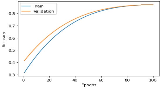 We trained a deep neural network (DNN) model on a dataset of network simulations, consisting of various features and parameters related to routing protocols for wireless networks. The dataset contained 10,000 data points, with 70% of the data used for training, 15% for validation, and 15% for testing. We used a DNN architecture with three hidden layers, each with 256 neurons, and a final output layer with three nodes representing the three routing protocols under consideration. The model was trained using the Adam optimization algorithm with a learning rate of 0.001 for a total of 100 epochs. As shown in Figure 8, after training, the DNN model achieved an accuracy of 87% on the test set, indicating that it can predict the optimal routing protocol with a high degree of accuracy for a given network scenario.