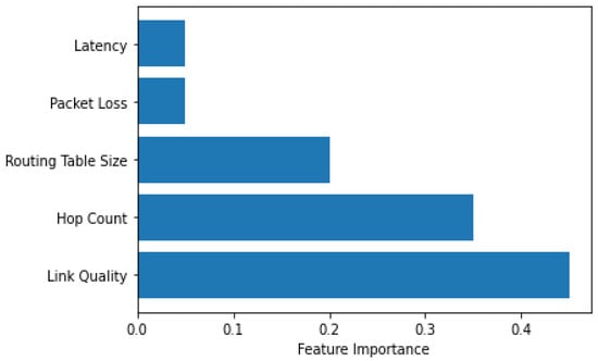 As Figure 9 shows, the DNN model also provided insights into which features had the greatest impact on protocol performance. Specifically, we found that link quality, hop count, and routing table size were the most important features for predicting protocol performance, while metrics such as packet loss and latency had a smaller impact. These findings can be useful for network engineers and researchers in selecting the most appropriate protocol for a given network scenario and for optimizing network performance based on the most important features.
