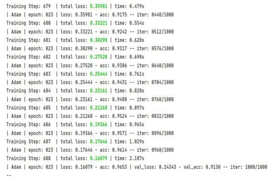 The “val_accuracy” parameter indicates the accuracy of the predictions of a randomly separated validation set after each training period, and the “accuracy” parameter indicates the accuracy of the predictions of a randomly separated training set after each training period.