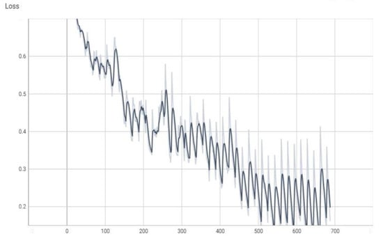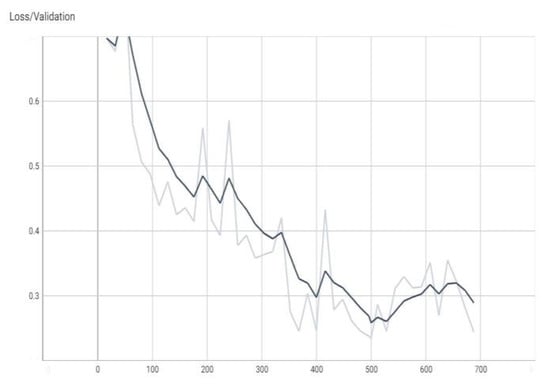 The value of the “loss” parameter during validation (the dark color curve is the definitive value curve, while the pale color curve is the curve training using AI).