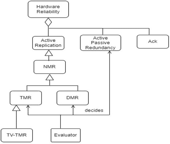 Figure 2 and Figure 3 show pattern diagrams classifying the main patterns of this section. Figure 2 shows hardware dependability patterns, while Figure 3 shows software reliability patterns.