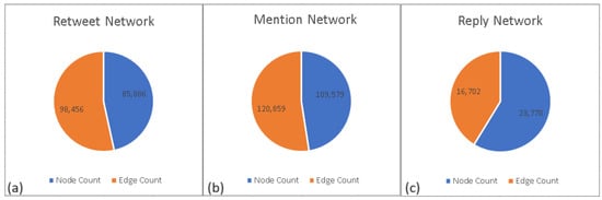 Section 3. Once the data collection is downloaded and all processing operations are complete, the network/graph creation module is executed. This module reads the CSV output of the preprocess module using the Pandas library and imports it into the runtime. Subsequently, separate retweet, mention, and reply networks are created using the ’from_pandas_edgelist’ function of the NetworkX library. During the creation of the retweet network, IDs of the users who tweeted and the retweeted user are defined as the nodes of the graph, and an edge is defined between them. UserID, retweeted tweet ID, and retweet userID are defined as additional information for correlation. The mention and reply networks are created using a similar approach. Isolated nodes of each network are removed from the network, and confusing correlations are eliminated. The node and edge statistics of each network are depicted in