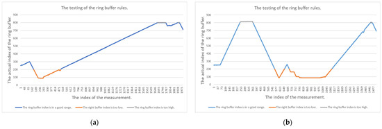 The results of testing the buffering rules. (a) The first result of testing the buffering rules. (b) The second result of testing the buffering rules.
