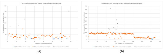 The results of the resolution changing tests based on the latency. (a) The first result of resolution changing tests based on the latency. (b) The second result of resolution changing tests based on the latency.
