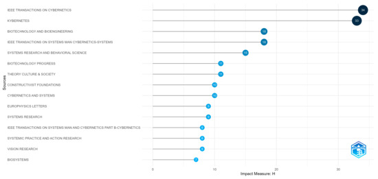 At the forefront of this ranking is “IEEE Transactions on Cybernetics” with an impressive H-Index of 34, followed closely by “Kybernetes” with an H-Index of 33. “Biotechnology and Bioengineering” and “IEEE Transactions on Systems Man Cybernetics-Systems” both share an H-Index of 18. “Systems Research and Behavioral Science” commands an H-Index of 15, while “Biotechnology Progress” and “Theory Culture & Society” each possess an H-Index of 11. “Constructivist Foundations” and “Cybernetics and Systems” both exhibit an H-Index of 10. Beyond the top 10, the remaining sources in the top 20 have H-Index values lower than 10.