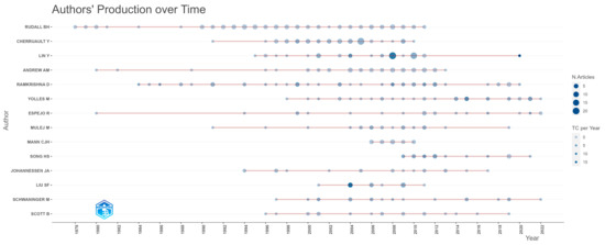 The publication history of authors within the Cybernetics domain serves as a testament to the evolving importance of this field. Notably, Cybernetics gained prominence in 1978 when Rudall BH published the first article, establishing himself as the most influential author in this domain. Rudall BH’s contributions span from 1990 to 2011, with at least one paper published each year during this period. Cherrault Y, another significant figure, made his debut in 1991, with a notable uptick in publications occurring in 2005 when he authored 21 papers, resulting in a total annual citation rate of 2.89. Lin Y initiated his Cybernetics publications in 1995 with a single article, and his contributions escalated in 2008 when he published an impressive 22 articles, resulting in a remarkable total annual citation rate of 11.81. Figure 8 presents the comprehensive list of the top 14 authors.