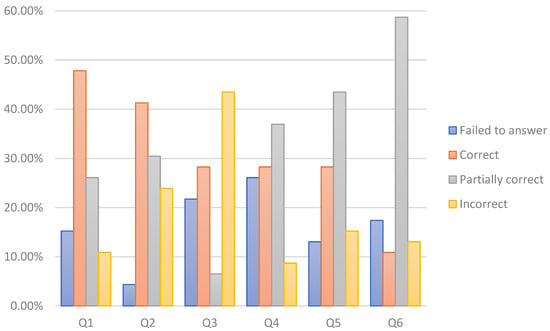 For example, on Q3 the participants had an obvious worsening of the performance compared to the other questions −21.74% failed to answer and another 43.48% gave incorrect answers. While Q3 was not designed to be of higher difficulty, it is possible that the presence of strictly medical terms such as ‘PET imaging’, ‘positron emission tomography’ and ‘brain metabolism’ caused confusion among the participants (Table A3). In fact, Q3 is the only question that contains specialized medical terminology related to imaging, which might explain the lower scores on this question.