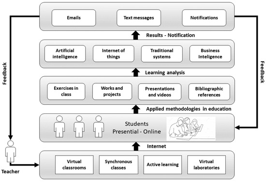 In the online and hybrid modalities, the teacher does not maintain control of the entire environment, and the solution to this problem is found again in ICTs. For this, the digitization of educational environments provides a solution to meet the new needs of students. However, the digitization of educational environments includes emerging technologies, such as Big Data, Artificial Intelligence (AI), the Internet of Things (IoT), Blockchain, etc. [18,19].