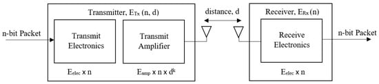 Figure 1 shows the radio energy model of an SN using two different channel models: free space path loss (d2) model for a single-hop communication and multipath propagation fading (d4) model for the multi-hop path communication. Therefore, the energy consumption for transmitting an n-bit packet over distance ‘d’ is computed as