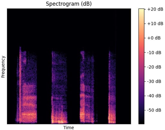 Spectrogram Conversion Module: to generate spectrograms for all recordings, the WebM audio is first converted to WAV format. It is noted that the recordings in the EPFL dataset are represented in audio WebM format, and the Cambridge and ASBLab datasets contain WAV format. Then, by taking the short-time Fourier transform (STFT) of the WAV files, the corresponding spectrogram, Figure 4, that presents the visual form of the audio frequencies with respect to time for each of the WAV files is obtained. A log transformation is used to convert the amplitude of STFT outputs into decibels using the Librosa [34] Python package. The fast Fourier transform (FFT) length and the sampling rate (kHz) that were used to obtain the spectrograms are 2048 and 48,000, respectively.