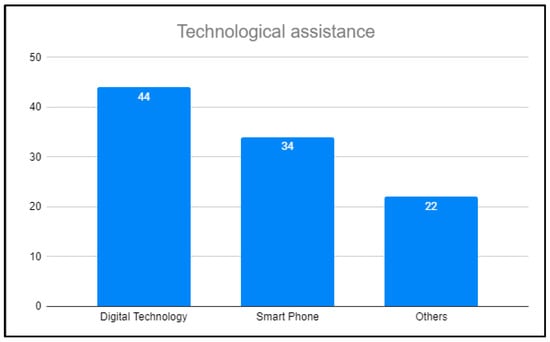 Based on the technological assistance required, 44 of respondents needed digital technology assistance, 34 needed smartphone assistance, and 22 needed other technological assistance (Figure 3).