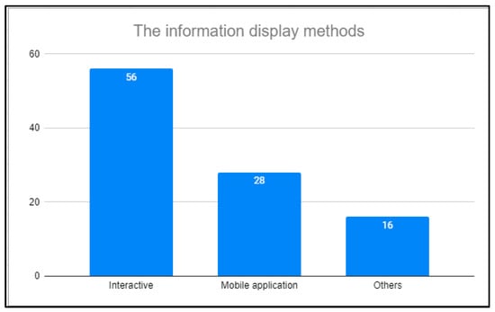 Based on the information display method, 56 of respondents prefer information to be displayed in an interactive way, 28 prefer mobile applications, and 16 require other strategies. The results for information display methods are shown in Figure 4.