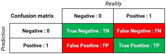 Furthermore, called Sensitivity, Recall is one of the essential metrics of the classification. It measures the number of people declared positive by the model and who are actually positive in relation to the total number of positive people in the dataset [41,42]. In other words, it is the metric that measures the model’s ability to detect all positive cases transmitted to it. It answers the following question: of all the positive records, how many were correctly predicted? A model with a high Recall will miss fewer positive cases. Its formula is as follows: