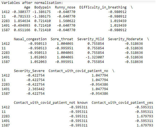 Most of the qualitative variables in this dataset were already encoded when we downloaded it except Gender, Severity, and Contact_with_covid_patient which we encoded ourselves using binary encoding for Gender and dummy encoding for Severity and Contact_with_covid_patient.