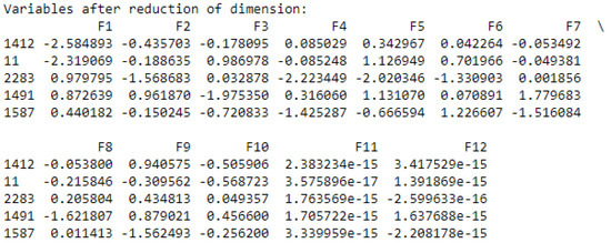 (4,5): After normalizing the data, we proceed to the dimension reduction by creating new components from the variables retained in step (1), as shown in Figure 10. Each component is associated with a value to explain its contribution.