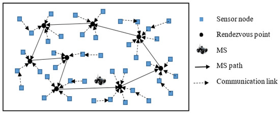 An example of a WSN where RP-based model is used for data collection by MS.