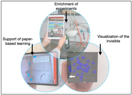 - Tschiersch, A.; Krug, M.; Huwer, J.; Banerji, A. ARbeiten mit erweiterter Realität im Chemieunterricht—Ein Überblick über Augmented Reality in naturwissenschaftlichen Lehr-Lernszenarien. CHEMKON 2021, 28, 241–244. [Google Scholar] [CrossRef]