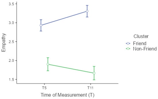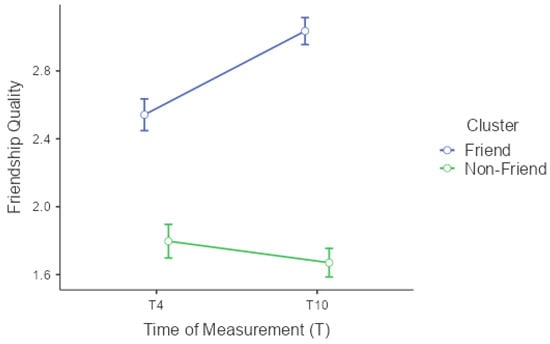 Changes in friendship quality over time separated by cluster with standard errors.
