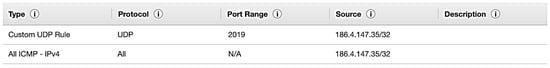 In Figure 14, it is presented for security purposes that incoming and outgoing connections to the virtual machine can be configured using access control lists (ACLs). Both incoming and outgoing connections will accept an ICMP connection to and from the public IP address managed by a fog computer administrative node. Similarly, the UDP protocol over port 2019 is the default for communication between cloud computing applications and the application that will run on cloud computing [].