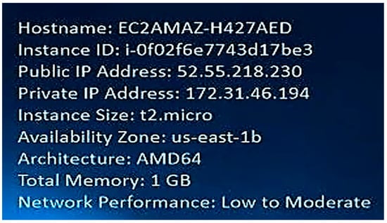 Figure 15 shows the public IP, private IP, and the specifications of the virtual machine, such as processing, memory, and location. The location of the machine corresponding to us-east-1b is the state of Virginia in the United States of America.