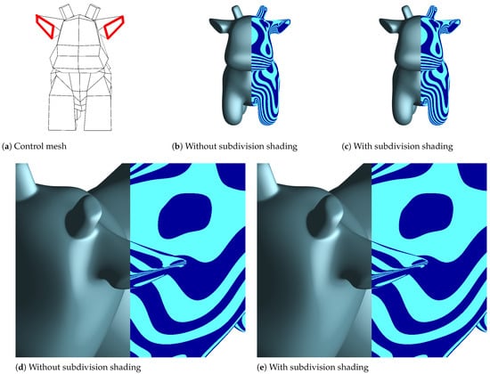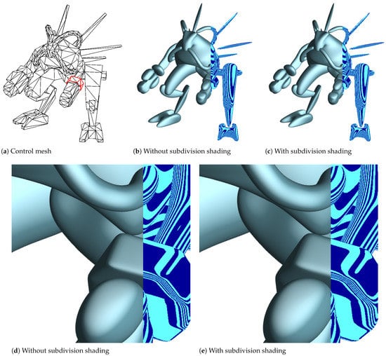 - Bakker, J.; Barendrecht, P.; Kosinka, J. Smooth Blended Subdivision Shading. In Proceedings of the Eurographics (Short Papers), Delft, The Netherlands, 16–20 April 2018; pp. 37–40. [Google Scholar]