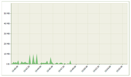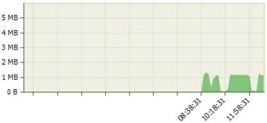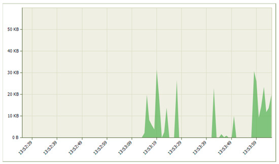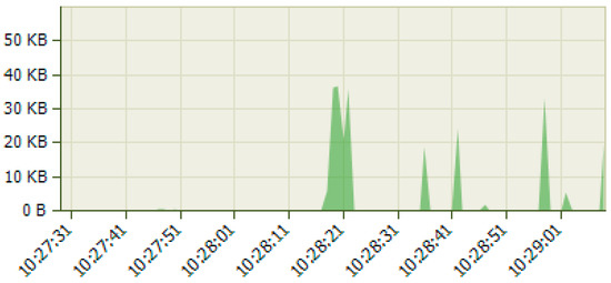 Figure 9 presents the traffic generated at every ten-second interval. As can be seen from the obtained results, they are analogous to the same results obtained for the PDU. Here again, at the times when the UPS is not accessed, no traffic is generated.