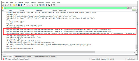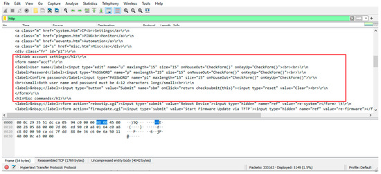 Figure 7 shows that in addition to the username and password, other important information is exchanged in plain text. This is the menu information for changing the password of the user account to access the device. This way of exchanging information is unacceptable.