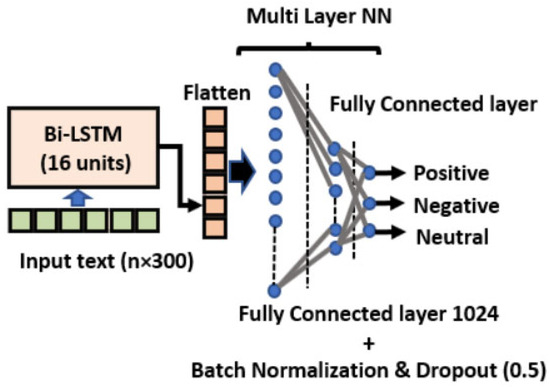 A study [54] analyzed the tweets using hybrid deep learning (HDL) techniques on the SemEVAL-2017 dataset. The outcomes revealed the efficiency of ANN (achieving 92% accuracy) as compared to other classifiers such as random forest, naive Bayes, and decision tree classifiers. Another study [55] conducted different approaches for sentiment analysis in Albanian, including traditional machine learning techniques such as logistic regression, naïve Bayes, decision tree, multi-layer perceptron, SVM networks, and random forest. Sentiment lexicon-based techniques and hybrid approaches from CNN and LSTM deep learning approaches were also used. The research was conducted on a large tweet dataset in Albanian. For data pre-processing, the study used several feature extraction methods, including bag-of-words, TF-IDF, Word2Vec, and glove. Experiments showed that LSTM with glove as feature extraction outperformed other models with 79.2% accuracy.