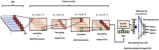 - Alayba, A.M.; Palade, V.; England, M.; Iqbal, R. A combined CNN and LSTM model for Arabic Sentiment Analysis. In Proceedings of the International Cross-Domain Conference for Machine Learning and Knowledge Extraction, Hamburg, Germany, 27–30 August 2018; Springer: Hamburg, Germany, 2018; pp. 179–191. [Google Scholar]