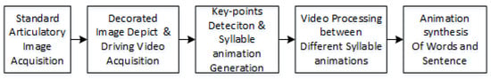 - The fifth step is to optimize and perfect the animation manually according to the situation such that the articulation is accented, toned, and connected and, finally, a relatively complete system can be generated. The system framework is shown in Figure 3.