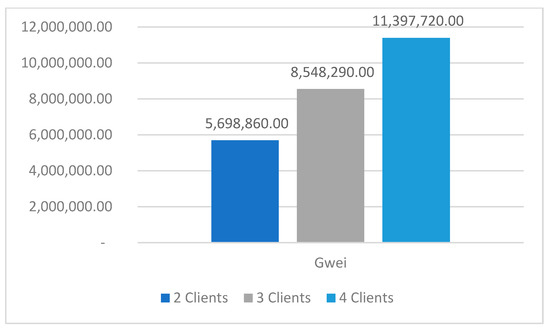 The blockchain aggregation results focused on estimating the cost of deploying the smart contract and parameter aggregation. All transactions in the blockchain need Gas to be deployed; gas fees are estimated using a cryptocurrency called Gwei. The cost results for N clients in this experiment are shown in Table 8.