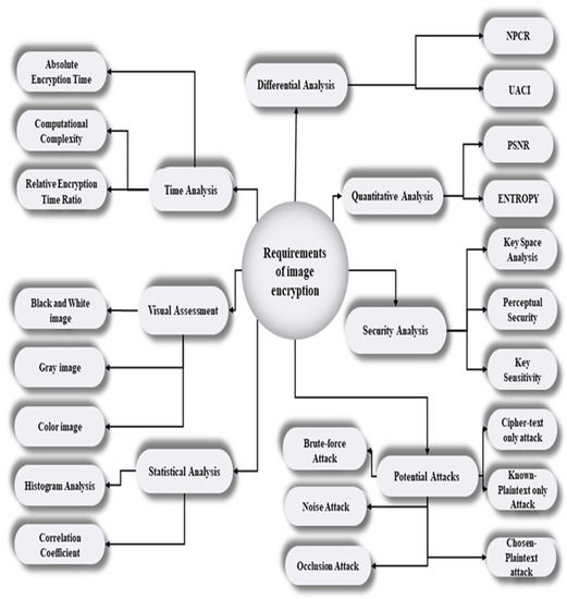 - Potential attacks: An ideal image encryption approach would be impervious to the various attacks that may be launched against the underlying cryptosystem, including ciphertext-only attacks, known-plaintext attacks, differential attacks, and so on.