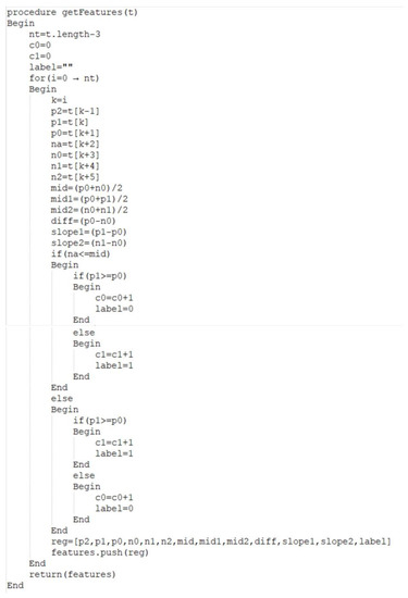 Given a t time series, the features shown in Table 1 were extracted using the algorithm shown in Figure 5.