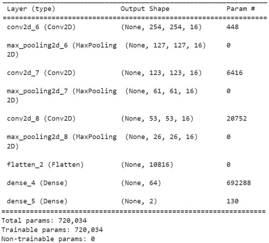 Through our research, we discovered that it is challenging to recognize photographs with tiny features (as the tumor is a glioma or meningioma). The categorization model should not be very deep like Res-Nets or Res-Next [12] models, but rather have a framework that can catch and learn subtle changes. Figure 2 is a diagrammatic representation of the research’s recommended model. In particular, four convolutional layers are used in the proposed model. The batch normalization approach is used to normalize the inputs, which has additional advantages such as reducing the training time and improving the model’s stability. Leaky-Re-LU is a variant of the original Re-LU technique that provides protection to neurons as they leave the cell. The Max-pool procedure is used in all of our pooling procedures. Max-pool picks the greatest value within the zone given by its filter to minimize an input [28]. The suggested model is able to classify two groups simultaneously, whether they are glioma tumors or meningiomas, or ordinary tumors. The classification job for brain tumors, whether glioma or meningioma, is performed using the same model. Finally, Figure 3 describes the layers and parameters used in the model. The developed deep learning model has 1,050,226 parameters. The Adam optimizer has been used to create weight updates, a cross-entropy loss function, and selective learning.
