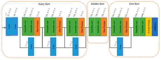 - Chollet, F. Xception: Deep Learning with Depthwise Separable Convolutions. In Proceedings of the IEEE Conference on Computer Vision and Pattern Recognition, Honolulu, HI, USA, 21–26 June 2017; pp. 1251–1258. [Google Scholar]