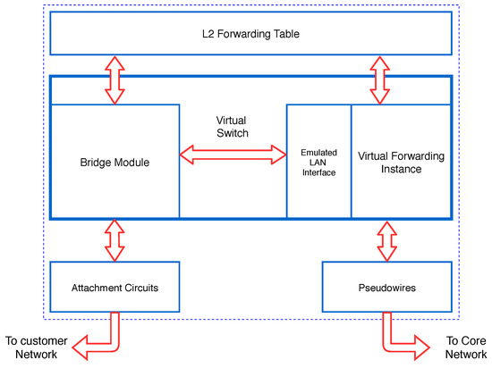 One of the many advantages of VPLS service is that it allows sites each with different broadcast domains to operate as if they are in a single big broadcast domain connected to big layer 2 switches. So far, VPLS is vendor-specific, which means that in order to support VPLS on a vendor’s device, the service provider should purchase VPLS modules that are only compatible with its own product, and also in this situation, it is unclear if the VPLS module is inter-operable with that of the device of other vendors located somewhere else. This gives us the inspiration to implement a vendor-agnostic VPLS on high-speed and commodity routers [4,12,14]. The development of new VPLS applications necessitates the incorporation of new operational needs, such as improved security, streamlined service provisioning, better network resource use, improved scalability, and autonomous network management support [15,16]. However, it is difficult for such functionality to be provided for new applications in the outdated VPLS architectures that are now in use.