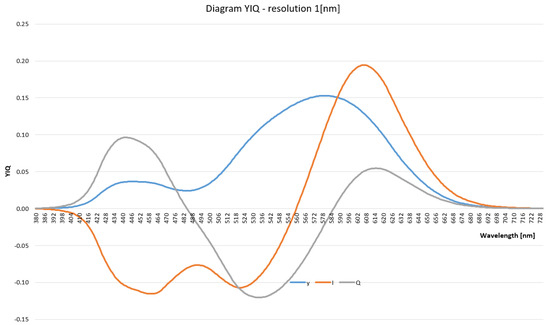 Diagram of chromatic coordinates IQ for different wavelengths .