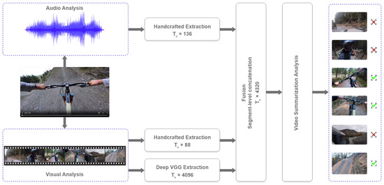 The approach for selecting the most informative parts of videos is as follows: It begins with the extraction of (a) handcrafted audio and visual features and (b) deep visual features. The former are extracted using well-known and widely used features, which have been proven reliable and effective in several classification tasks. For the extraction of the latter, the well-defined pretrained model VGG19 [11] is used, which also has been successfully applied into a plethora of computer vision applications. Note that the proposed approach is multimodal, since the handcrafted features, apart from the visual properties of videos, also capture the aural properties, as well as semantic features (e.g., faces and objects). To produce the visual summaries, both handcrafted and deep feature representations are then fused, and experiments with a set of well-known supervised classification approaches are conducted. To verify the proposed methodology and to assess whether the deep features are able to provide a boost of performance over the use of solely handcrafted features, experiments on three datasets are presented. Specifically, apart from the aforementioned custom dataset that has been created, experiments using two well-known, publicly available datasets, namely, TVSum [12] and SumMe [13], are also presented, while the proposed approach is also compared with a plethora of state-of-the-art techniques. To further improve the outcome of the proposed approach, experiments with augmentation of the training dataset are conducted. Specifically, when experimenting with a given dataset, the remaining two are used as training data. The experimental results indicate that (a) deep features, when fused with handcrafted ones, are able to provide an increase of performance, and (b) augmentation of the training dataset in some cases also provides a significant performance boost.
