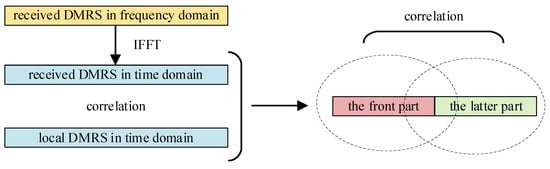 DMRS-based frequency offset estimation methods are mainly divided into the Adjacent DMRS-based algorithm [24] and the Half-symbol-based algorithm [25,26]. The Adjacent DMRS-based algorithm estimates the frequency offset by calculating the phase difference between adjacent DMRSs. Its range is related to the minimum interval of the DMRS in the time domain. The Half-symbol-based algorithm estimates the frequency offset by comparing the phase changes in each half of a single DMRS in the time domain. As shown in Figure 8, the correction range is equal to the subcarrier spacing.