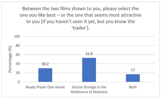- Between the two films shown to you, please select the one you like best, or the one that seems most attractive to you (if you have not seen it yet, but you know the ‘trailer’).