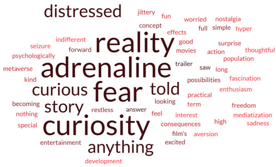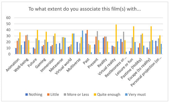 The films were selected according to the concepts they approach, which we considered the same that we aim for with our objectives and research question. The films selected were: Ready Player One, launched in 2018, directed and produced by Steven Spielberg, and the history was one in 2045, where Wade Watts, like the rest of humanity, prefers the virtual reality of the OASIS game to the real world. James Halliday, the game’s eccentric creator, dies and leaves his priceless fortune to the first person to discover the key to a diabolical puzzle he devised. To win, Watts must abandon virtual existence and experience love and reality, with a total audience of 453,000; Doctor Strange in the Multiverse of Madness, launched in 2022, represents the long-awaited film about Doctor Strange’s journey into the unknown. In addition to receiving help from new mystical allies and others already known to the public, the character crosses the multiverse’s incomprehensible and dangerous alternate realities to face a new and mysterious adversary with a total world audience of 438,000. In our questionnaire, we had questions “yes or no,” with a Likert scale, and open questions to explore the concepts in the study.