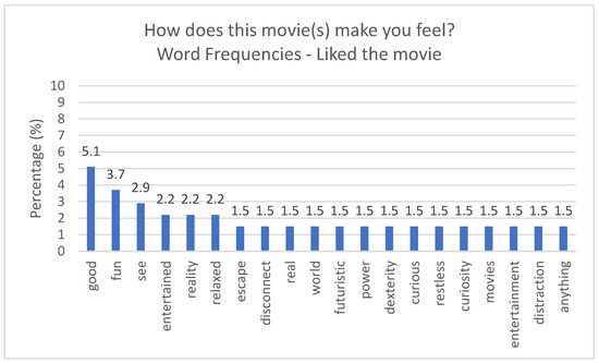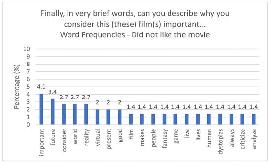 The first five are related to the demographic sample questions, and the others are related to the movies we presented. For the reliability and validation of this questionnaire, we analyzed Cronbach’s Alpha (α = 0.85), a value that can vary between 0 and 1, the closer it is to one, the more significant the internal consistency between items; therefore, the stronger the connection between the questions that are a part of the questionnaire. We also confirmed that the correlation between questions is all highly statistically significant.