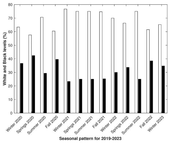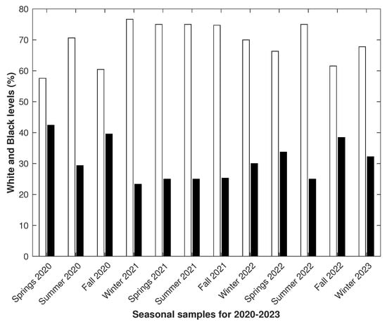 The samples were based on records from 1 March 2020 to 28 February 2023. The seasonal alternation in white-to-black ratios () was typical from spring 2020 to spring 2021. The intervals from summer 2021 to autumn 2021 were approximately equal. Winter 2022 was an exception, after which the alternation was restored.