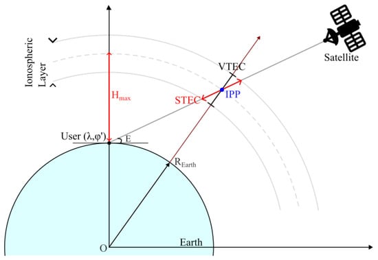 Illustration of VTEC and STEC corresponding to a satellite signal.