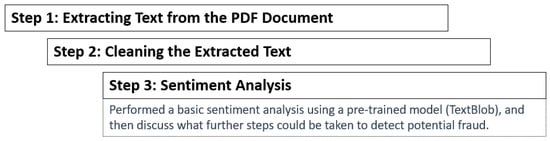 This comparative approach will also allow us to explore the hypothesis that certain linguistic patterns, initially presumed to indicate fraudulent activity, may also be present in legitimate reports [57,58,59,60]. Identifying these patterns will refine the accuracy of sentiment analysis as a tool for fraud detection, ensuring that it is sensitive to genuine indicators of fraud while minimising false positives.