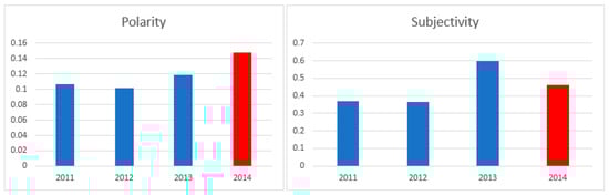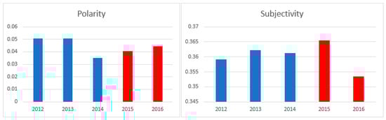 Tesco’s marked increase in polarity and subjectivity in 2014, the fraud year, might symbolise an attempt to project an optimistic picture inconsistent with the actual financial situation. This change in tone could be a subtle sign of underlying manipulation.