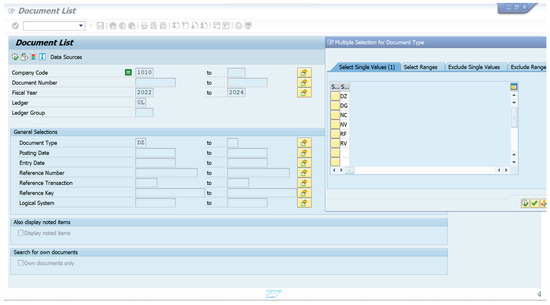 Choice of variables and parameters: The variables and parameters relevant for the analysis are defined. These include accounting document number, document date, posting date, recording time, document type, and accounting sequence, among others.