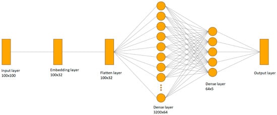 Bidirectional Encoder Representation from Transformers is a language model based on transformer architecture. Transformers are a class of deep learning models that utilize self-attention mechanisms to weigh the importance of different parts of the input data differently, enabling the model to capture complex dependencies and relationships in text data. In a survey regarding BERT-related papers, it was concluded that in 2020, BERT became the baseline for NLP tasks [49]. BERT consists of three modules: embedding, a stack of encoders, and un-embedding. The embedding module is used to convert an array of one-hot encoded tokens into an array of vectors. The second module performs transformations over the array of vectors from the first module. The last module is the un-embedding module, and it translates the final representation of the vector back into one-hot encoded tokens.