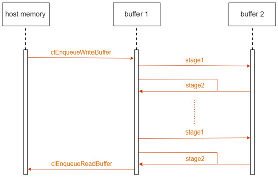 In this paper, OpenCL [20] was used. Open Computing Language is a framework for writing programs that execute across heterogeneous platforms, including CPUs, GPUs, DSPs, and FPGAs. Its primary purpose is to facilitate parallel computing by allowing developers to harness the computational power of diverse hardware architectures within a unified programming model. By leveraging parallelization, OpenCL aims to significantly enhance performance in various computational tasks, from scientific simulations to real-time data processing. OpenCL is widely used for high-performance computing [21]. Its cross-platform nature [22] makes it useful in various domains of application. Parallelization was used in [23] for solving nonlinear ordinary differential equations. A sparse matrix-vector multiplication is presented in [24]. Parallel computing in the modeling of fractional-order state–space systems is presented by [25]. The Smith–Waterman implementation is shown in [26].